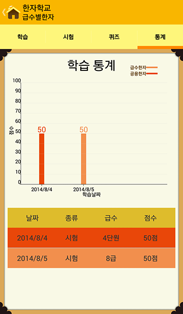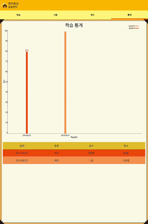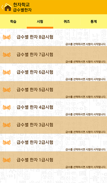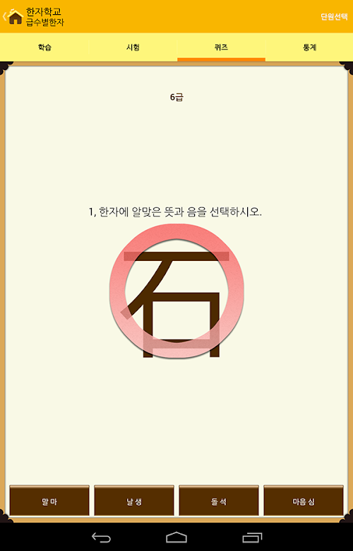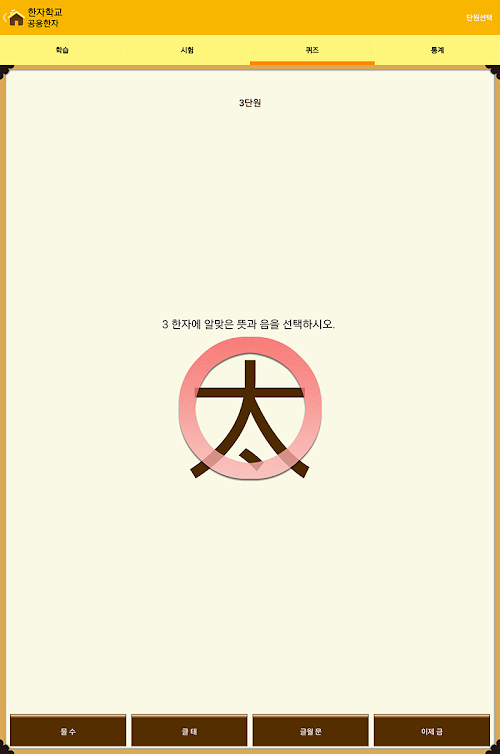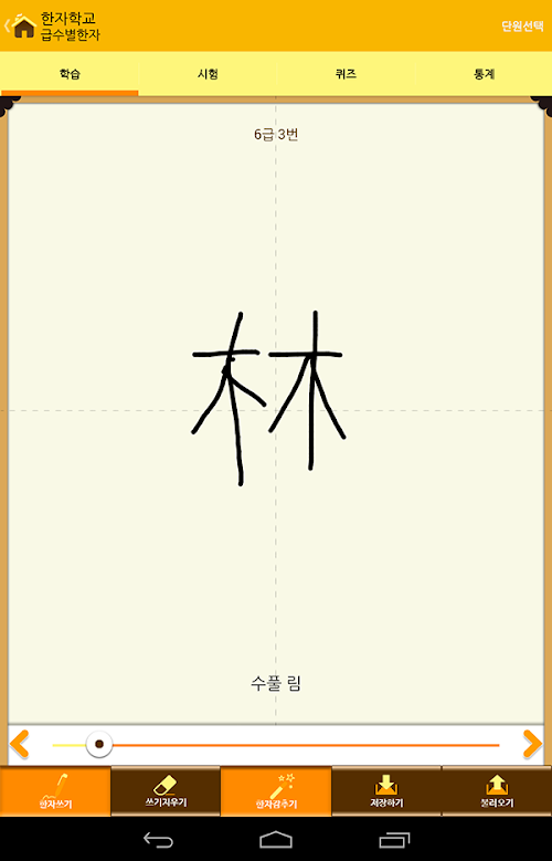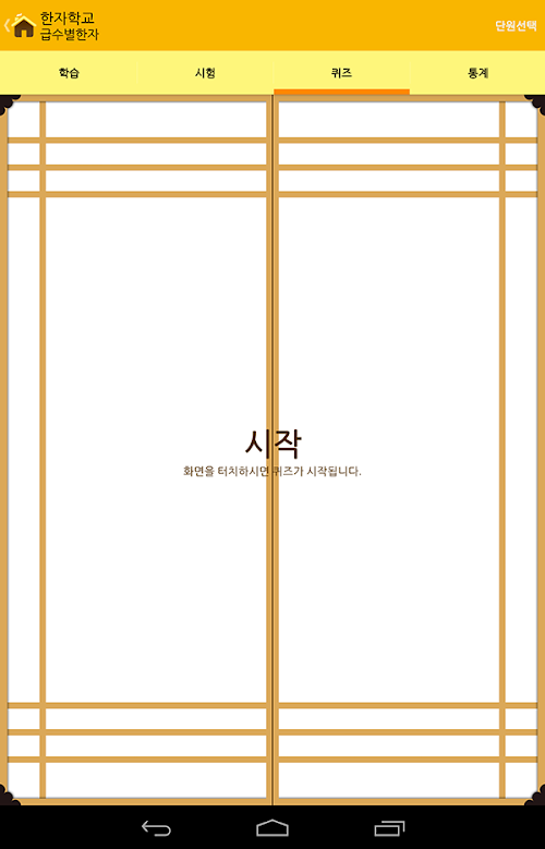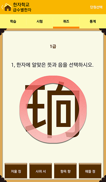 간단한 단원별 무작위 한자시험도 볼 수 있어서 공부를 했는지 확인해보세요.