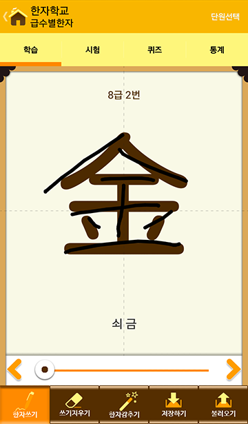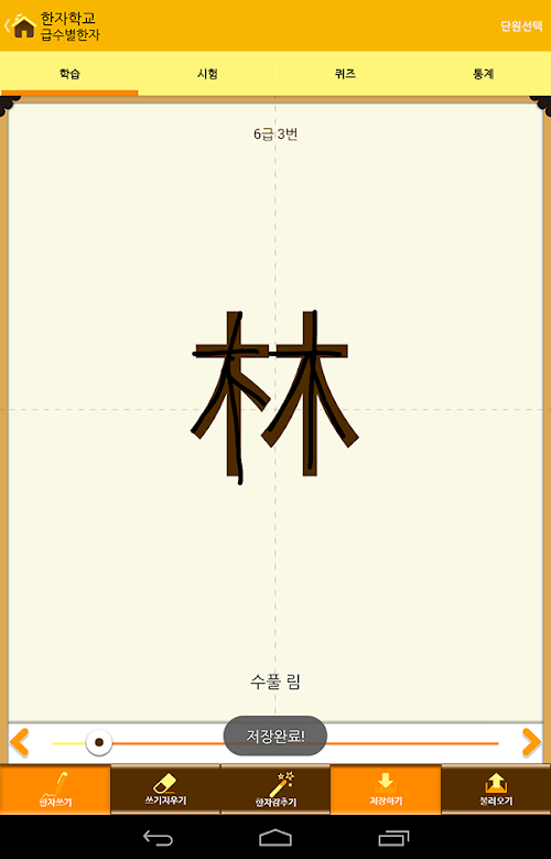 또 자신이 외웠던 한자인지 바로 알 수 있도록 저장과 불러오기 기능도 있습니다.