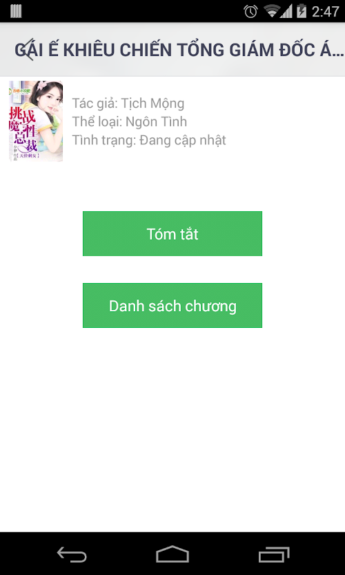 Bạn s tìm thấy những truyện hay nhất và mới nhất. Phần mềm sẽ câ nhật truyện, tiểu thuyết, tác phẩm, tác giả thường xuyên, mang đến cho bạn những giây phút sảng khoái.