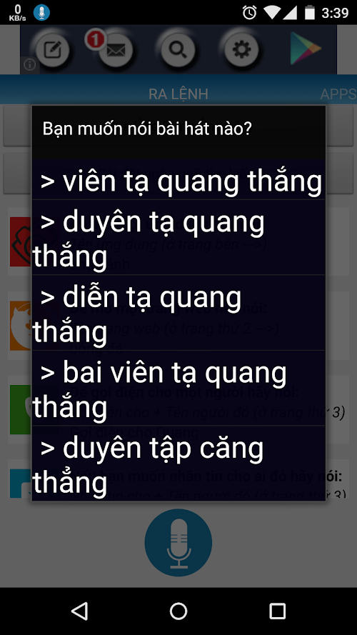 Api application using Google Vietnamese recognition to help users control some phone functions Vietnamese voice as: