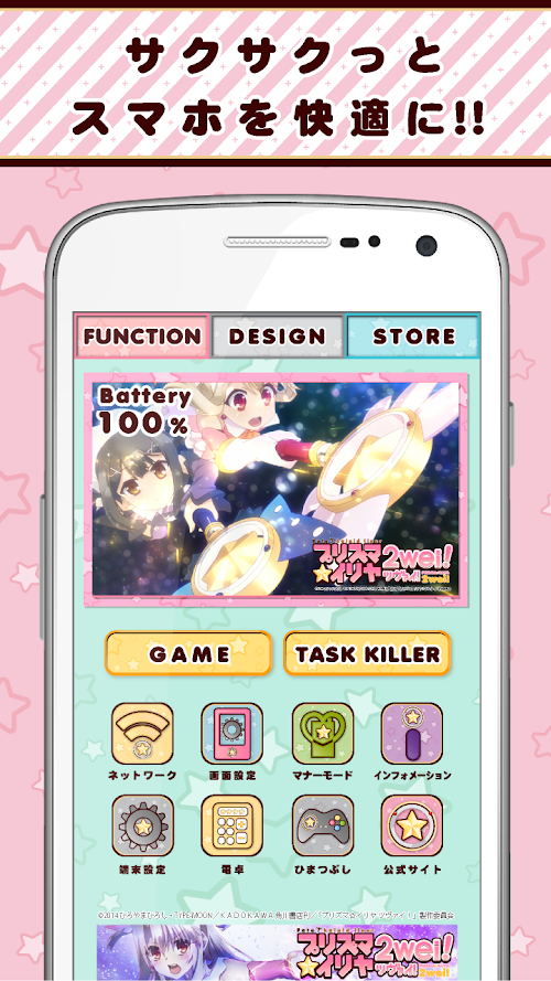 株式会社ノス(NOS Inc.)Battery of the second phase Prisma ☆ Ilya Anime (Battery Widget) delivery start for free! ! Heroines familiar such as phosphorous and Ilya is willing to support the battery remaining amount of the smartphone of you!