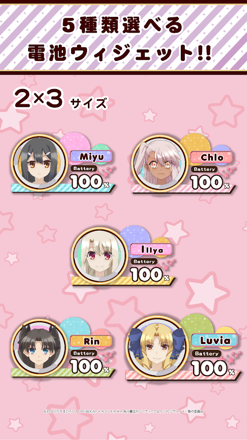 プリズマ☆イリヤアニメ第2期の電池(バッテリーウィジェット)が無料で配信開始!!イリヤや凛などのおなじみのヒロイン達がキミのスマホの電池残量をサポートしてくれるよ!