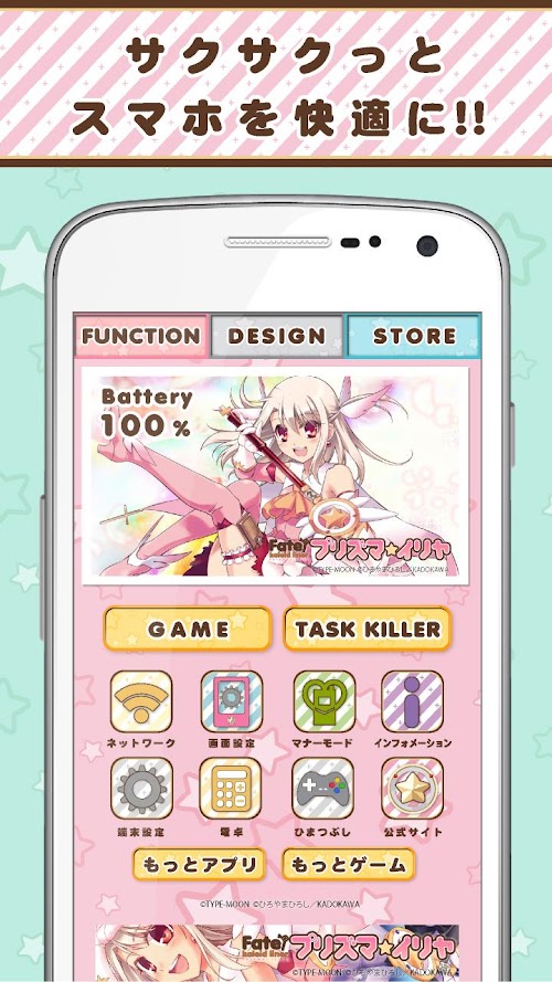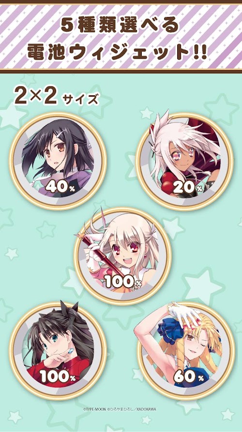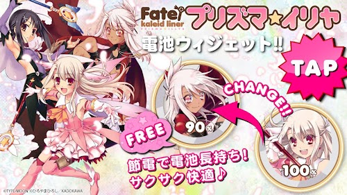 プリズマ☆イリヤコミック版の電池(バッテリーウィジェット)が無料で配信開始!!イリヤや凛などのおなじみのヒロイン達が電池になってキミのスマホをサポートしてくれるよ!