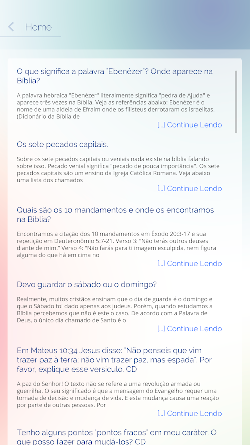 Para saber mais sobre a Bíblia ou fazer alguma nova pergunta acesse: http://biblia.com.br For many years the Bible School of Novo Tempo has received questions from people interested in learning more about the Bible and what that book says on various aspects of daily life. This application brings together a collection of over 2000 answers so you can easily access by typing the topic or keyword.