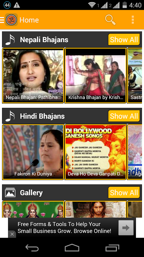 This version of Bhajans (भजन) Android App comes with one universal variant which will work on all the Android devices.
