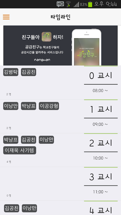 3. 타임라인을 통해 공강인 친구들을 확인한다.