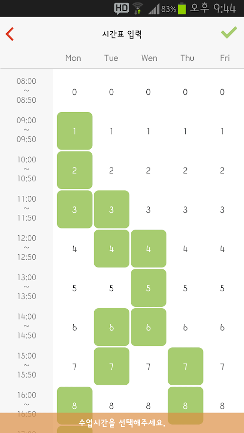 2. 자신의 시간표를 입력한다