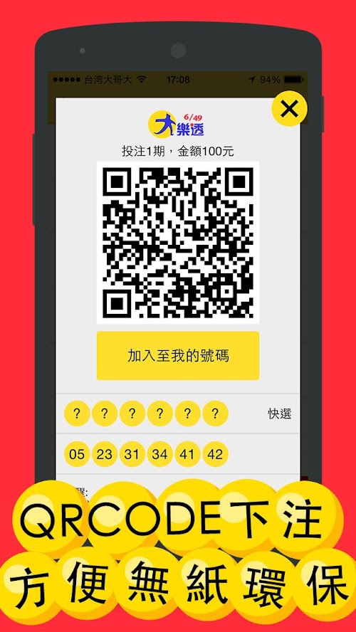 預先在APP內選好號碼自動產生QRcode,到投注站隨掃隨買!再也不用花時間浪費紙畫卡,方便、快速、環保一舉數得~