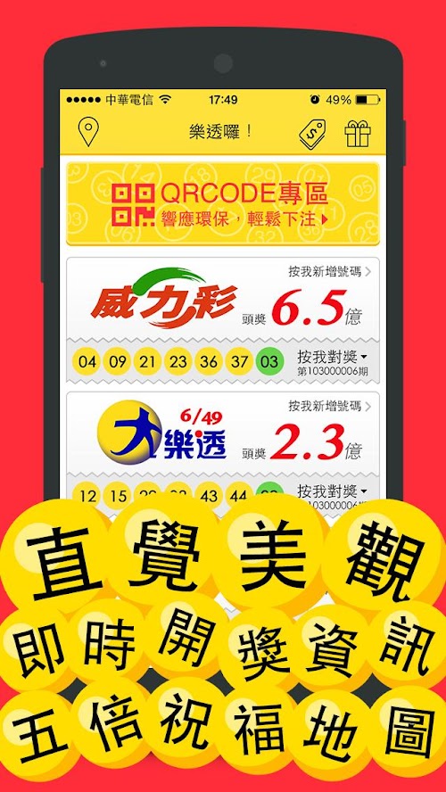 「樂透囉!」由Olis團隊精心設計打造,同時支援大樂透、威力彩、刮刮樂等彩券玩法,每晚即時更新開獎資訊。另外還有各式免費好康優惠券可以拿!