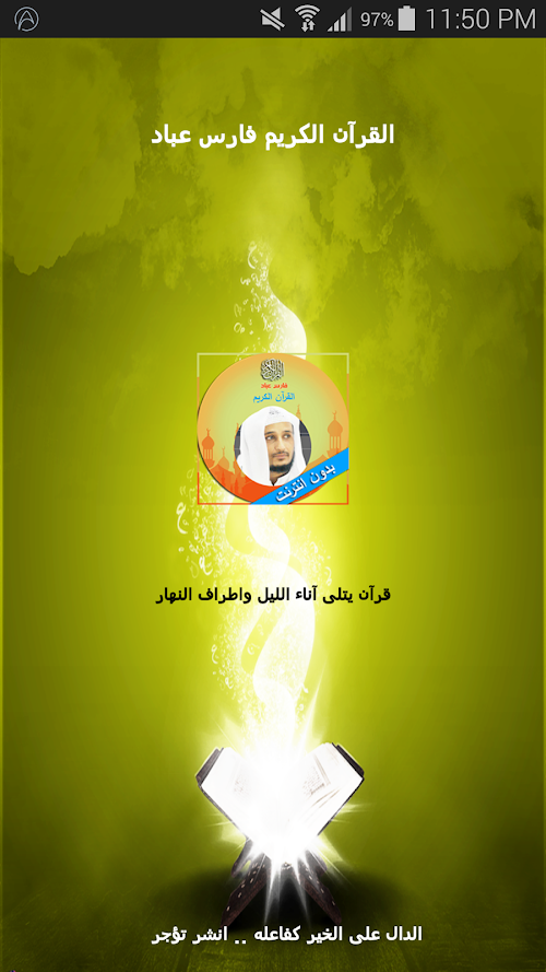 القرآن الكريم بصوت فارس عباد بدون انترنت بميزة التشغيل في الخلفية يحتوي على سورة فاتحة الكتاب والكهف وقصار الصور
