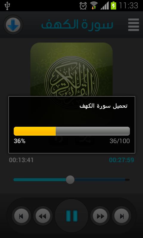 إمكانية تحميل السور على الجهاز٫ مما يمكنك من الاستماع للتلاوة دون الاتصال بالانترنت