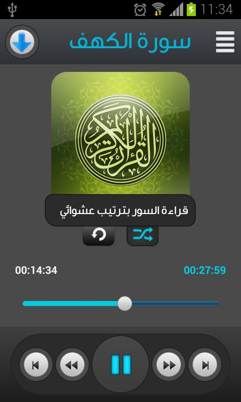 تحميل السور على الجهاز٫للاستماع للتلاوة دون الاتصال بالانترنت