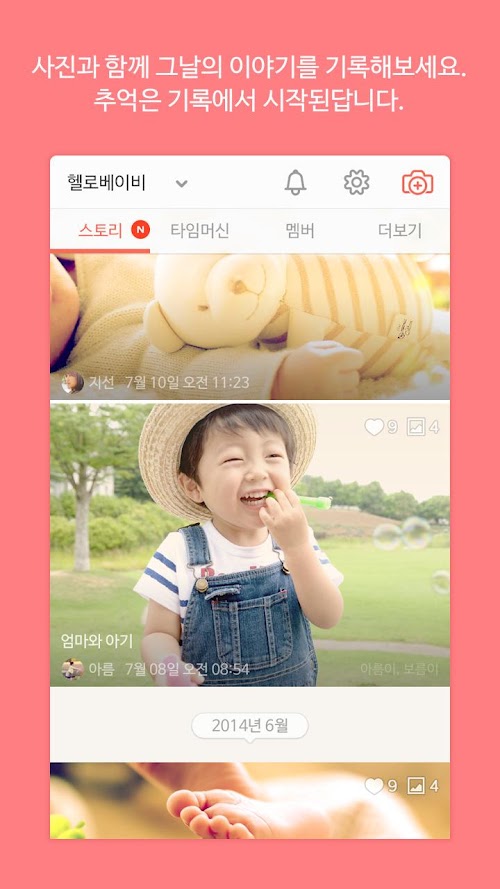 차곡차곡 모아진 컨텐츠는 우리가족의 히스토리가 되고 내 아이의 성장앨범이 됩니다.