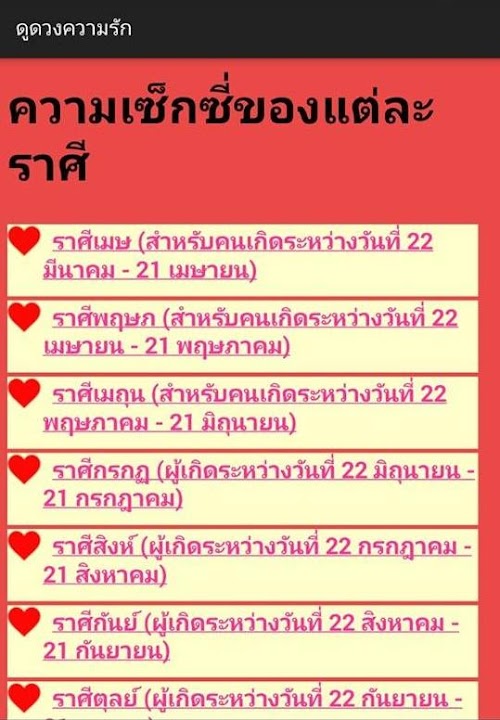 ดูดวงความรัก ทำนายดวงความรักของคุณ ด้วยวิธีต่างๆ เซียมซีทำนายความรัก เกี่ยวกับเนื้อคู่ของคุณ ทำนายของลับของของคุณ ทำนายดวงความรักกับวันทั้ง7 ทำนายความเซ็กซี่จากราศีของคุณ มาดูกันว่าดวงความรักของคุณในปีนี้จะเป็นอย่างไรกับ ดูดวงความรักปี 2558 ทำนายกรุ๊ปเลือดกับความรักของคุณ ดูดวงคู่สมพงษ์ตามนักษัตรปีเกิด ดูว่าคู่รักของคุณจะอยู่กันได้หรือไม่ หรือจะเด่นในด้านใด ตามตำราดูดวงความรักโบราณ หรือจะ ดูดวงความรักโดยรวม จากราศีเกิดทั้ง12ราศี ทั้งหมดนี้ฟรี มาเช็คกันเลยว่า ดวงความรัก ของคุณเป็นอย่างไร!? ขอให้ทุกท่านสุขสมหวังกับความรัก คบกับใครขอให้ความรักยืนยาว ถือไม้เท้ายอดทอง กระบอกยอดเพชรI love your love horoscopes. Various methods Recently predict Love On your soulmate Prediction of your secrets Horoscopes love with the 7 days. Sexy prediction of your zodiac sign. See how I love you this year will be like this. Horoscope 2558 predicts blood with your love. Sompong Zodiac Horoscope Couple by birth. See if your partner is the same or not. Or to any outstanding According to ancient texts, love horoscope love horoscope overall. From the 12 Chinese Zodiac All for free To check how much I love you?!? Wish you happiness and love. Who Let the love relationship with longevity. The golden rod The diamond cylinder