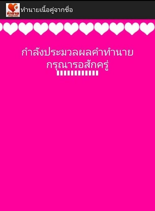 If you are looking to download other versions of ทำนายเนื้อคู่จากชื่อ Android App, We have 1 version in our database. Please select one of them below to download.