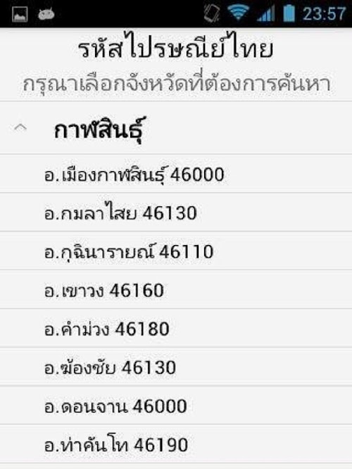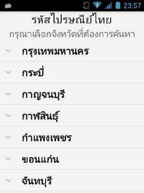 รหัสไปรษณีย์ไทย ถ้าหากคุณกำลังจะส่งจดหมาย หรือพัสดุ คุณอาจจะต้องหารหารหัสไปรษณีย์ ซึ่งแอพของเราได้รวมรวมรหัสไปรษณีย์ไว้ ทั้งหมด 77จังหวัดของประเทศไทย ครบถ้วนทุกอำเภอ ตำบล ใช้ง่าย ค้นหา รหัสไปรษณีย์ไทยได้อย่างง่ายดาย เพียงไมกี่วินาที แอพนี้สามารถใช้ได้ขณะไม่ได้ต่ออินเตอร์เน็ต ทำให้คุณสามารถหารหัสไปรษณีย์ได้ทุกที่ทุกเวลา คุณจะพบกับความสะดวกอย่างแท้จริงในการหาข้อมูล เพื่อจัดส่ง สิ่งของของคุณ กับแอพรหัสไปรษณีย์ไทยPostal Thailand If you are sending a letter or parcel may be divided for a code. The applications have included code to all 77 provinces. Every congressional district code easy to find Thailand easily. A few seconds This app is not available on the Internet. You can find the code at any time. You will truly experience the convenience of finding information to ship your items. The application code Thailand