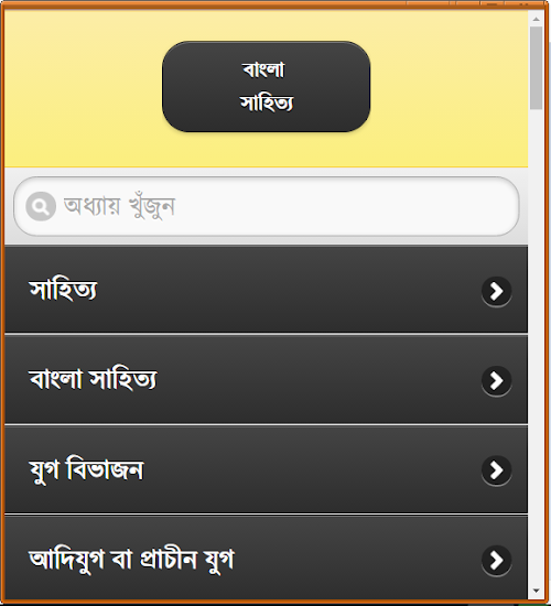 বাংলা সাহিত্যের সংক্ষিপ্ত পরিচিতি এবং ইতিহাসন নিয়ে একটি গুরুত্বপুর্ণ অ্যাপ। এই অ্যাপে বাংলা সাহিত্যের অনেক বিষয় নিয়ে আলোচনা করা হয়েছে। এই অ্যাপ ছাত্রছাত্রী, শিক্ষক, সাহিত্যানুরাগী, কবিসাহিত্যিক সহ সকল প্রকারের মানুষকে সাহায্য করবে বলে আমাদের বিশ্বাস।