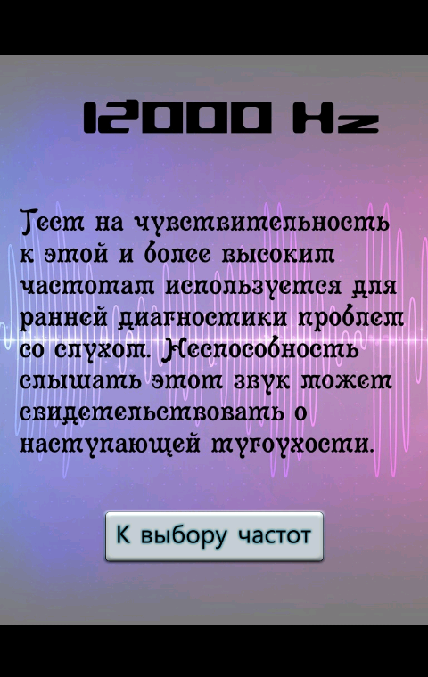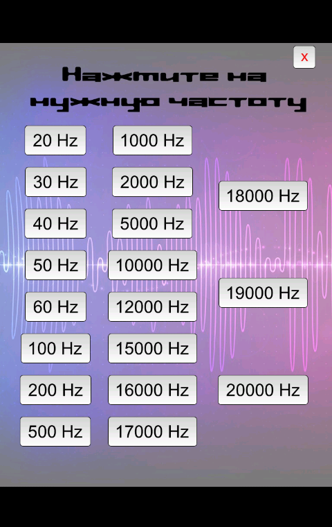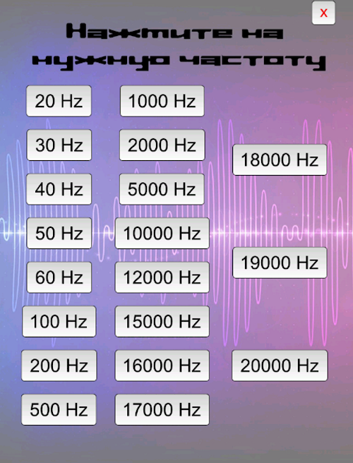 Проверка начинается с 20 Hz (инфразвук) и заканчивается 20000 Hz (ультразвук).This program is used to verify your speakers or hearing.