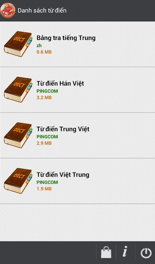 Massive dictionary database (general & specialized), Including: Chinese - Vietnamese Dictionary, Vietnamese - Chinese and Chinese - English Dictionary.