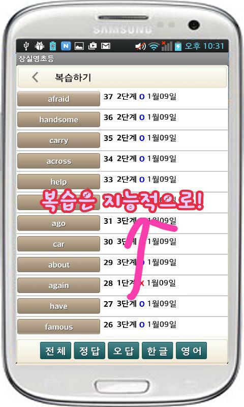 영단어 장실영의 주된 컨셉은 따라하기만 하면 모르는 단어는 쉽게 암기하도록 하면서 자주공부하게하고 아는 단어는 잊지 않도록 다양한 방법으로 복습되도록 하는 것입니다.