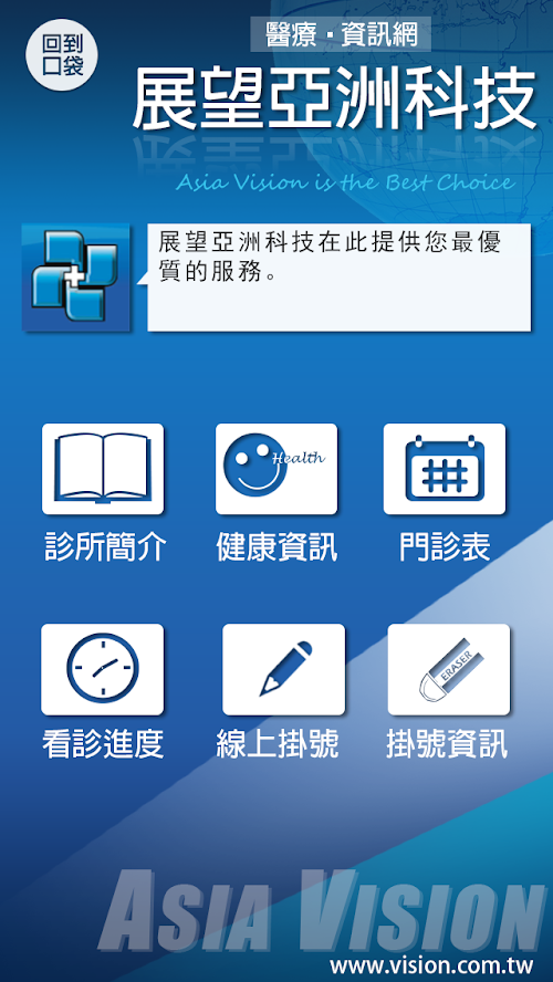 Looking Asian technology, was founded in the Republic on June 76, uphold the "integrity services", "sustainable development" concept, allied medical institutes computerized forward. From the company embryonic stage "labor insurance" to "universal health insurance" purposes, has been accompanied outlook primary care physicians through this stormy institutes, development has been the head office in Taipei, Taipei Branch, Taichung Branch, Kaohsiung Branch, Taoyuan companies, and distributors throughout the country, more than a hundred bits service professionals, 6,000 hospitals nationwide to provide the most professional and most professional service time. Along the way, look to always uphold the idea of the creation of time, in order to "help simplify the tedious work of medical institutions physician" and "doctor-patient relationship and create a win-win" as the goal.