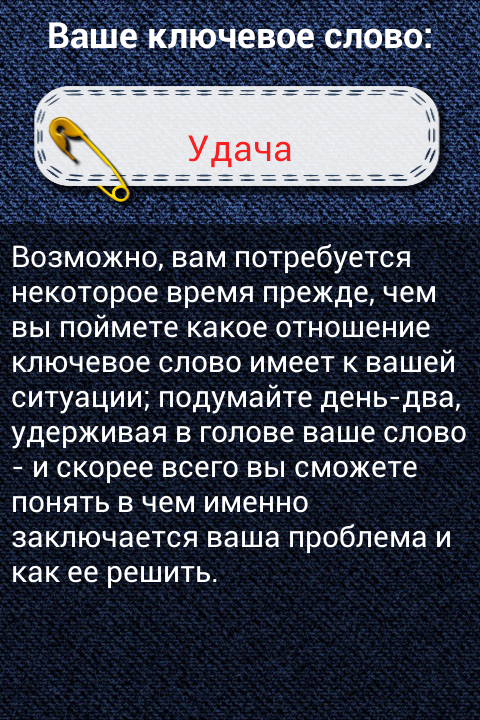 • "Приятное удивление. Я была немного шокирована результатом, так как конечное слово оказалось именно тем, что мне нужно, что тревожит. Может быть совпадение просто это, но все же, я ставлю этому приложению 5."