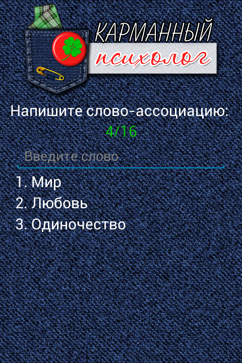 • "Хорошее приложение. Помогает разобраться в себе и разложить все по полочкам. И дело даже не в итоговом слове, а в самом процессе пути к нему.""Pocket psychologist" - an application that uses a unique method to help you find the key to solving your problems. The app will be your permanent assistant, through which you learn to understand yourself, your feelings and concerns.