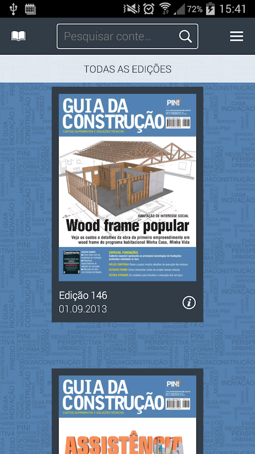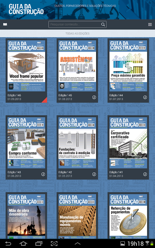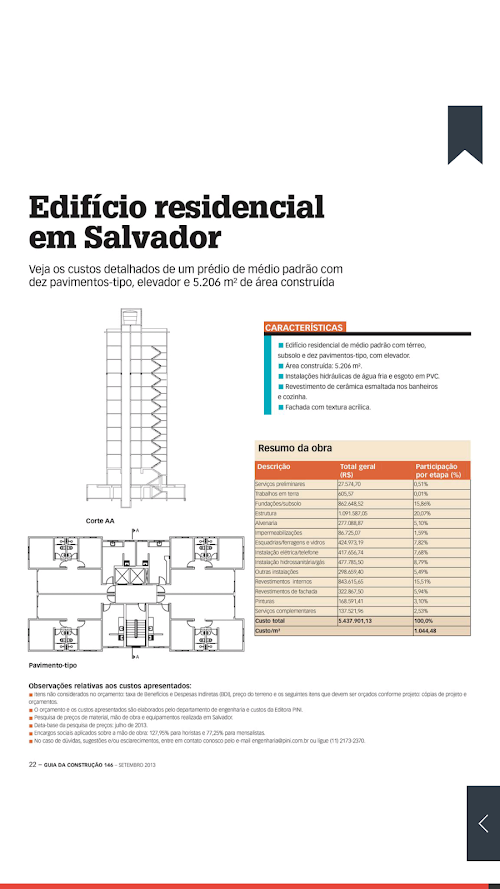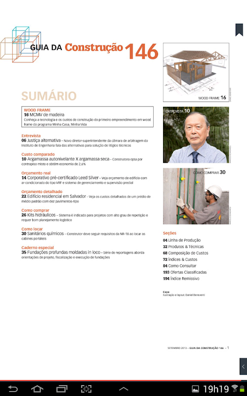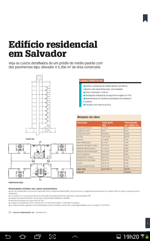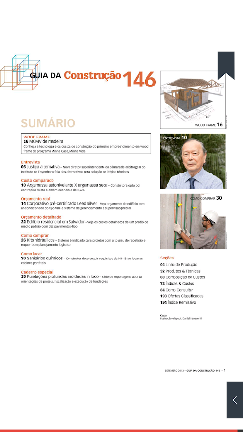 "Construction Guide" is the only magazine Exclusively devoted to the construction cost, specification, procurement, construction planning and control areas. The Guide is Intended for the construction professional seeking the best business and technical solutions in procurement and contracting services. (The magazine application and all texts are in Brazilian Portuguese).