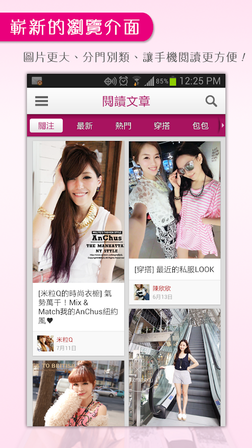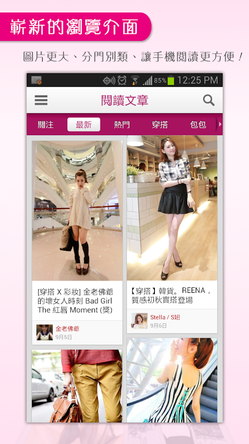 * 分門別類的資訊頻道,包括穿搭、包包、鞋子、配件、內衣 (男生們不能偷看哦! )…