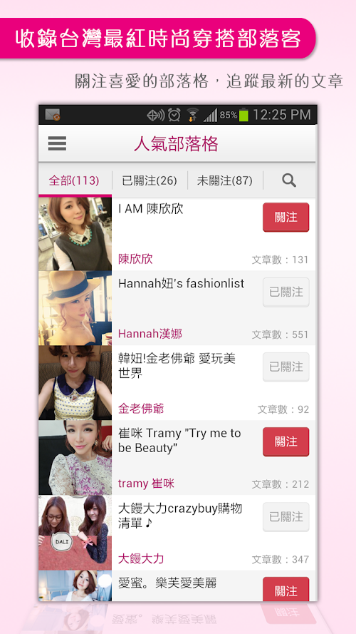 「台灣時尚達人」蒐集一百多位台灣網路人氣時尚穿搭部落格,讓您輕鬆掌握第一手最新的流行時尚資訊,找出自己的風格! 不論何時何地都能閱讀時尚部落客的文章,享受美麗時尚在您掌心的樂趣!