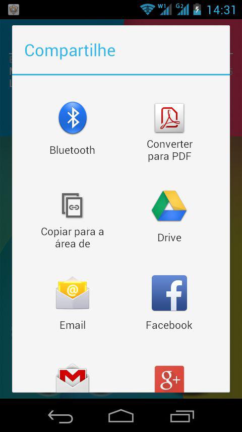 - Função compartilhar, com os amigos via facebook, sms, email e outros,