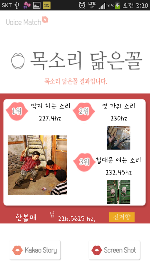 목소리로 궁합, 이미지, 닮은꼴을 알아보는 재미 어플리케이션 보이스매치가 100만 다운로드를 돌파한 후 약 6개월 여만에 다시 돌아왔습니다!