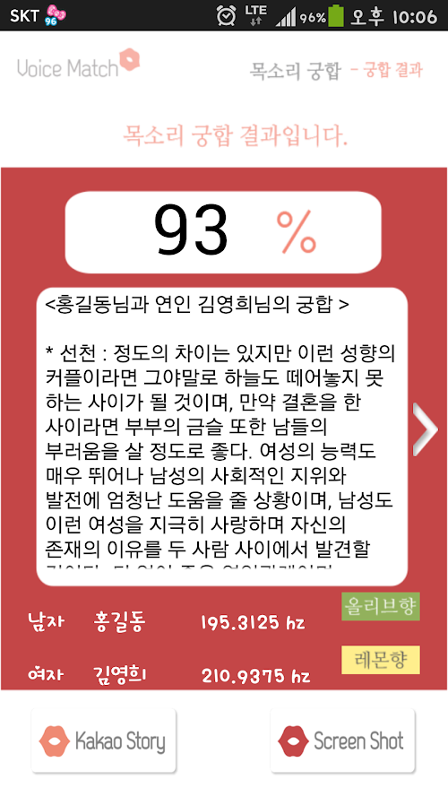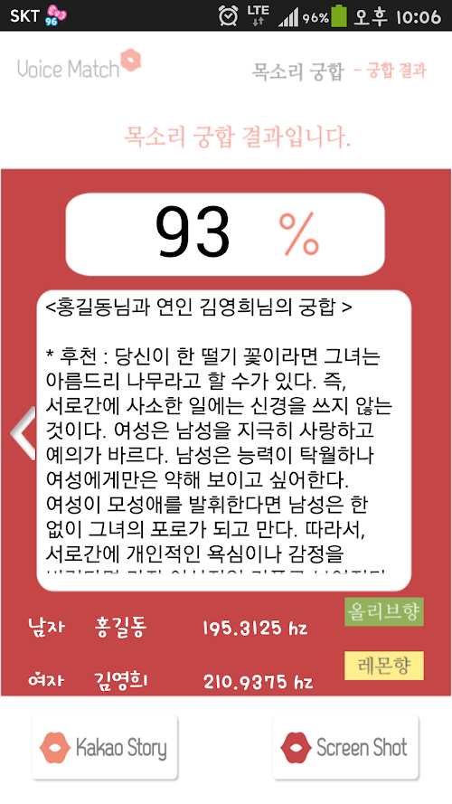 - 목소리 궁합 : 연인이나 친구, 직장상사 등 모든 지인들과의 목소리 궁합을 확인할 수 있습니다.