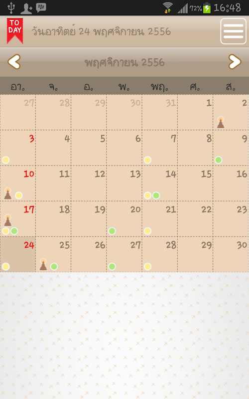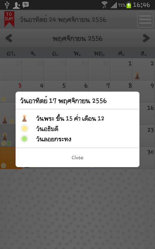 Fan page: http://www.facebook.com/rankarthaiApplication "Holiday Calendar" is an application that indicates the date the prime Thailand general auspicious day and holiday presents for all 12 months of the new year and will be updated every year. The notification system is important. A simple, easy to use, users can choose color themes, change color itself.