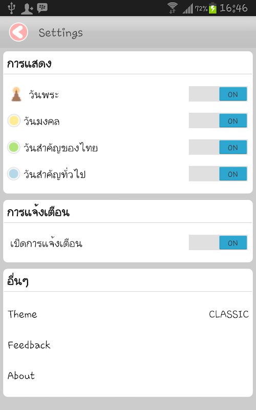 This version of ปฏิทินวันหยุด Android App comes with one universal variant which will work on all the Android devices.