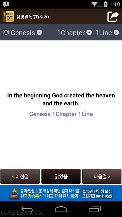지금 바로 '성경일독QT(KJV) - 잠금화면'어플로 시작하세요.