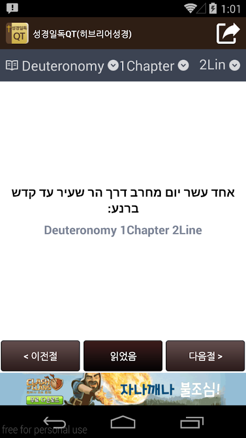 지금 바로 '성경일독QT(히브리어성경) - 잠금화면'어플로 시작하세요.
