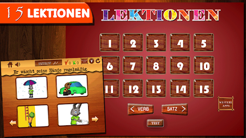 • The app teaches the basics of the German main verbs with a very interactive teaching method.