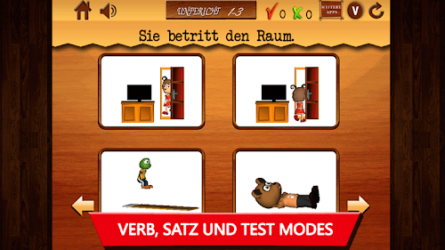 • Der app bietet 3 Modus: "Verb" "Satz" und "Test".