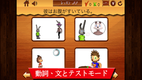 •動詞の意味を表すことにより、180以上の甘い写真、アニメーションやフラッシュカードを提示します。