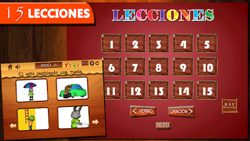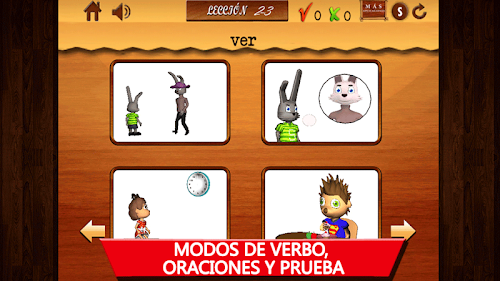 • Flexibilidad para entrar en modo «verbo» en cualquier momento al interrumpir la lección. El verbo correspondiente se lee y se encuentra también escrito.