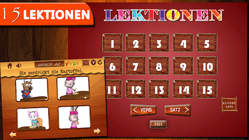 • Der app bietet 3 Modus: "Verb" "Satz" und "Test".