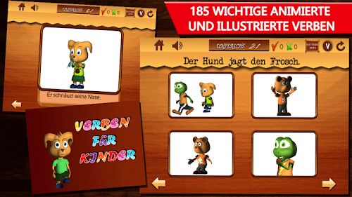 ,Once your child has mastered the main verbs of 1s part, you can proceed to the 2n part. This language-learning app features 185 important animated and illustrated verbs in high quality 3D animation format, with appropriate pronunciation and sound effects. Learning objectives are German verbs in subject-verb agreement to speak, to develop vocabulary skills and to learn German language. Your child will be diagnosed with 3D animated sweet character images enjoy seeing, hearing, understand, speak and learn German verbs from a German mother Spracher. The app also provides a playful, fun language-learning method for small children when children are very receptive to language learning and articulation.