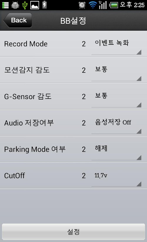 - 차량용 블랙박스 아이리스에 환경설정을 한다