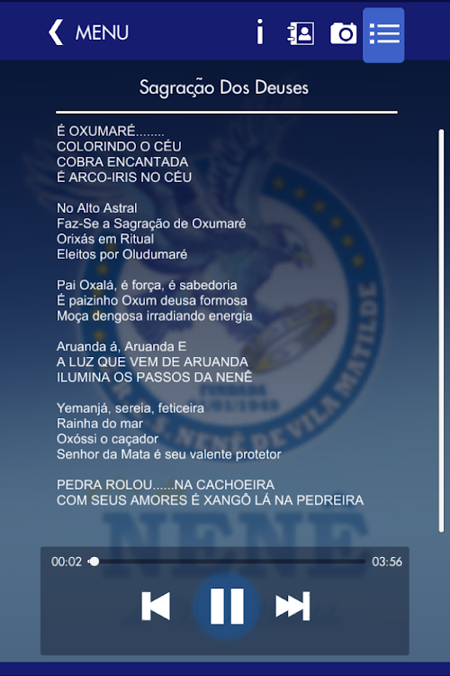 Com as cores vibrantes, com o ecoar da bateria, com os enredos que contam suas histórias e com toda a energia e vibração de uma Escola de Samba, este Aplicativo vai encantar e levar uma parte da Cultura Carnavalesca para os quatro cantos do planeta.