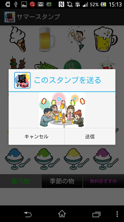 完全無料、会員登録不要のスタンプ画像送信アプリです。