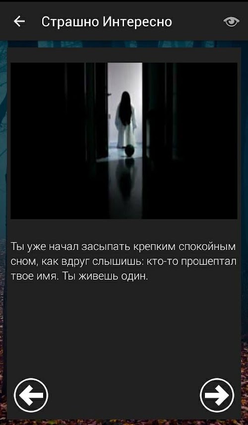 Несомненно, с каждым человеком рано или поздно случаются страшные, непознанные, мистические истории. В этом приложении собраны очень интересные и увлекательные страшные истории из реальной жизни.Earthly Life sometimes mysterious and enigmatic, and sometimes there are unexplained miracles that most convinced skeptic starts vehemently believe and assert that otherworldly forces, supernatural phenomena is not a joke, it really exists. Prophetic dreams, poltergeist, beautiful girl with fish tails - a mermaid, as of old children's tale, fagot, meeting houses. People at all times and epochs it caused indestructible interest.