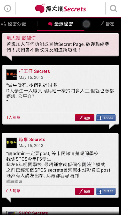 爆大獲Secret,匯集了各大Facebook Secret Pages的內容。