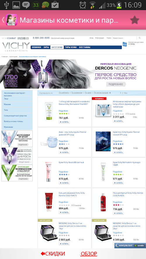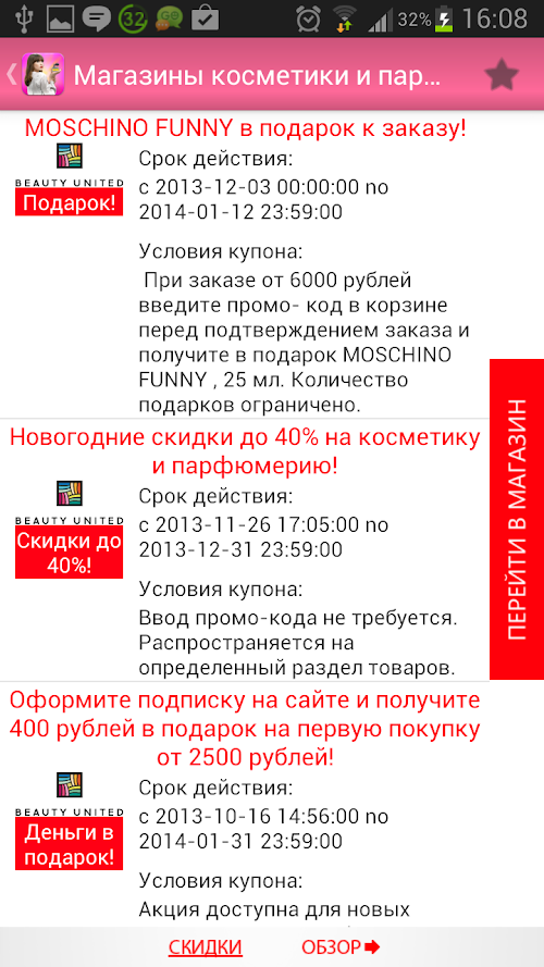 Specifically, that would solve this problem, we have made an application in which combined the best online shops of cosmetics and perfumes. In them you will find the most fashionable and popular tools that will make it perfect and you truly irresistible. A regular section - "Shares" to allow and save money.