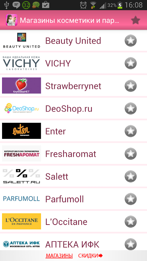 Специально, что бы решить эту проблему, мы сделали приложение, в котором объединили лучшие интернет магазины косметики и парфюмерии. В них вы найдете самые модные и популярные средства, которые сделают именно Вас поистине прекрасной и неотразимой. А постоянный раздел - "Акции" позволит на этом еще и сэкономить.